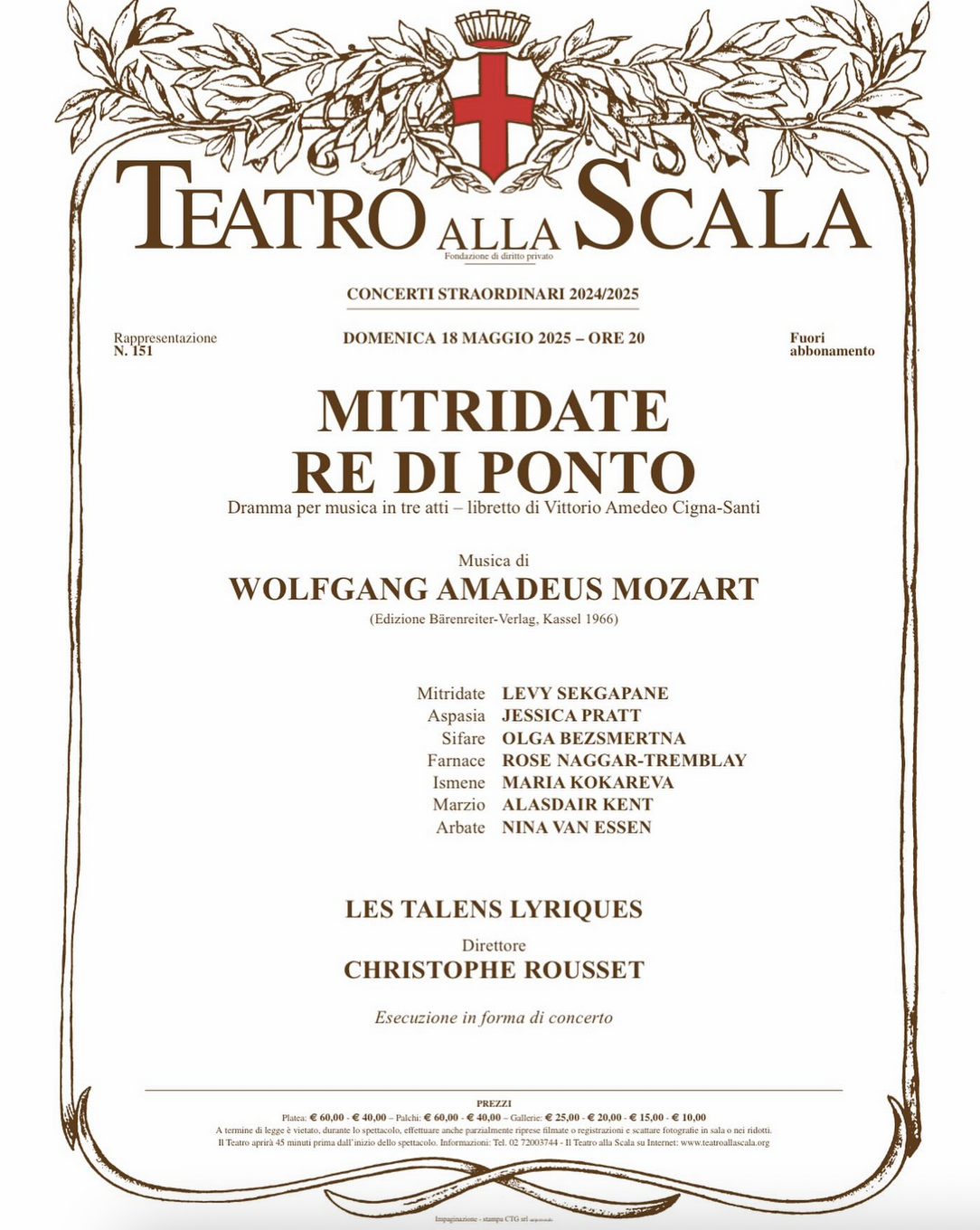 Rejointe à Paris où elle devait participer à une seconde représentation du même opéra au Théâtre des Champs-Élysées, Rose Naggar-Tremblay dit avoir vécu une expérience mémorable et se sentir privilégiée d’avoir pu monter si rapidement dans sa carrière sur les planches de la Scala. Elle remercie le directeur des Talens lyriques, Christophe Rousset, qui lui a à nouveau fait confiance après l’expérience de Giulio Cesare à Toulouse. De ce chef français pour lequel elle a un immense respect, elle apprécie la capacité d’amener l’orchestre à faire du théâtre et accompagner les solistes dans toutes les nuances de la partition pour mieux raconter l’histoire complexe du roi mise en musique par Mozart… à 14 ans ! À propos de cette œuvre de jeunesse du prodige de Salzbourg, Rose Naggar-Tremblay dit avoir apprécié les airs composés pour Farnace, le « Venga pur, minacci » du premier acte et les « Va, l'error mio palesa » et « Son reo; l'error confesso » du deuxième acte. Ils sont annonciateurs des futures partitions qui ont fait de Mozart l’un des grands compositeurs lyriques de son époque et dont les œuvres ne cessent de séduire la communauté des lyricomanes de par le monde.