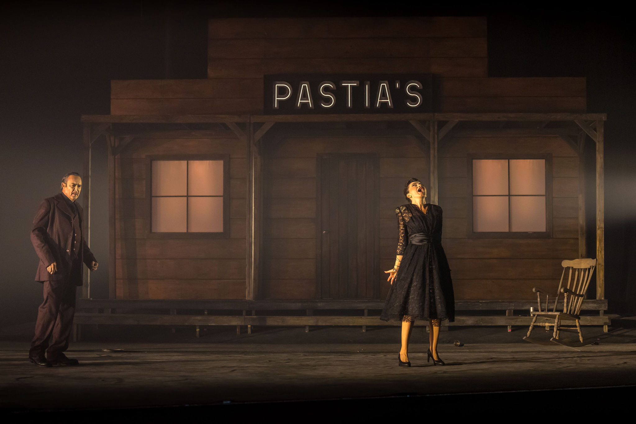 Cette reprise de l’opéra s’est effectuée dans sa version originale, c’est-à-dire avec dialogues parlés, comme c’est le cas pour un opéra-comique, et non avec les récitatifs d’Ernest Guiraud. Pour les habitués de l’œuvre, cette Carmen avait de quoi surprendre puisque toute allusion pittoresque à une Espagne de type « carte postale » a été supprimée. Nicola Berloffa qui, en 2023, avait signé à Québec une originale mise en scène de Lucie de Lammermoor, a audacieusement transposé Carmen dans les années 1940-1950, dans une sorte de far-ouest imaginaire, au milieu de nulle part. Il voulait clairement se concentrer sur les personnages, si bien cernés par Bizet, et sur le triangle amoureux qui allait aboutir à un féminicide. Plus bourgeoise qu’ouvrière, avec ses talons aiguilles en pleine montagne, sa Carmen est à la fois provocante et sensuelle, impitoyable avec les hommes et sincèrement amoureuse le temps que dure sa passion. Dès la fin du 2e acte, Don José laisse entrevoir une violence possessive n’augurant rien de bon. La douce Micaëla est tout sauf mièvre : elle ne manque pas de tempérament, tant face aux soldats qu’à Don José sous l’emprise de Carmen, et les soldats, citadins et cigarières créent une faune souvent enthousiaste et criarde et très – trop ? – agitée. À noter les interprétations que l’on peut tirer de cette foule au 3e acte : hommes, femmes et enfants, bagages en main et bien habillés, rappelaient les Français qui, durant la Seconde Guerre mondiale, fuyaient la zone occupée. Plus près de nous, comment ne pas voir en cette traversée à travers les montagnes des « passeurs » escortant des migrants en quête d’une nouvelle vie...