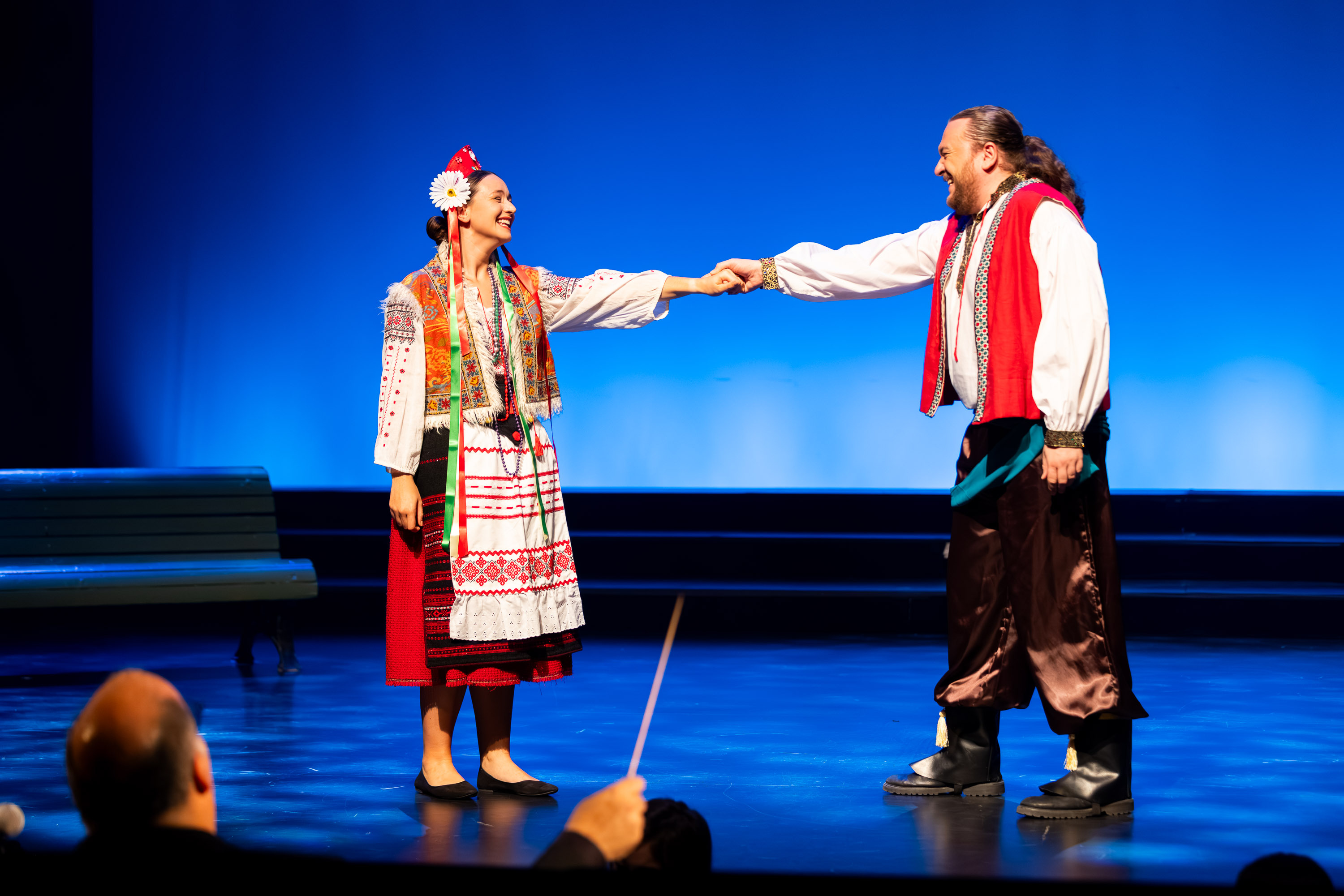 Amélie Baland-Capdet (Nadia) et Emmanuel Hasler (Camille), La veuve joyeuse, Opéra bouffe du Québec, 2025