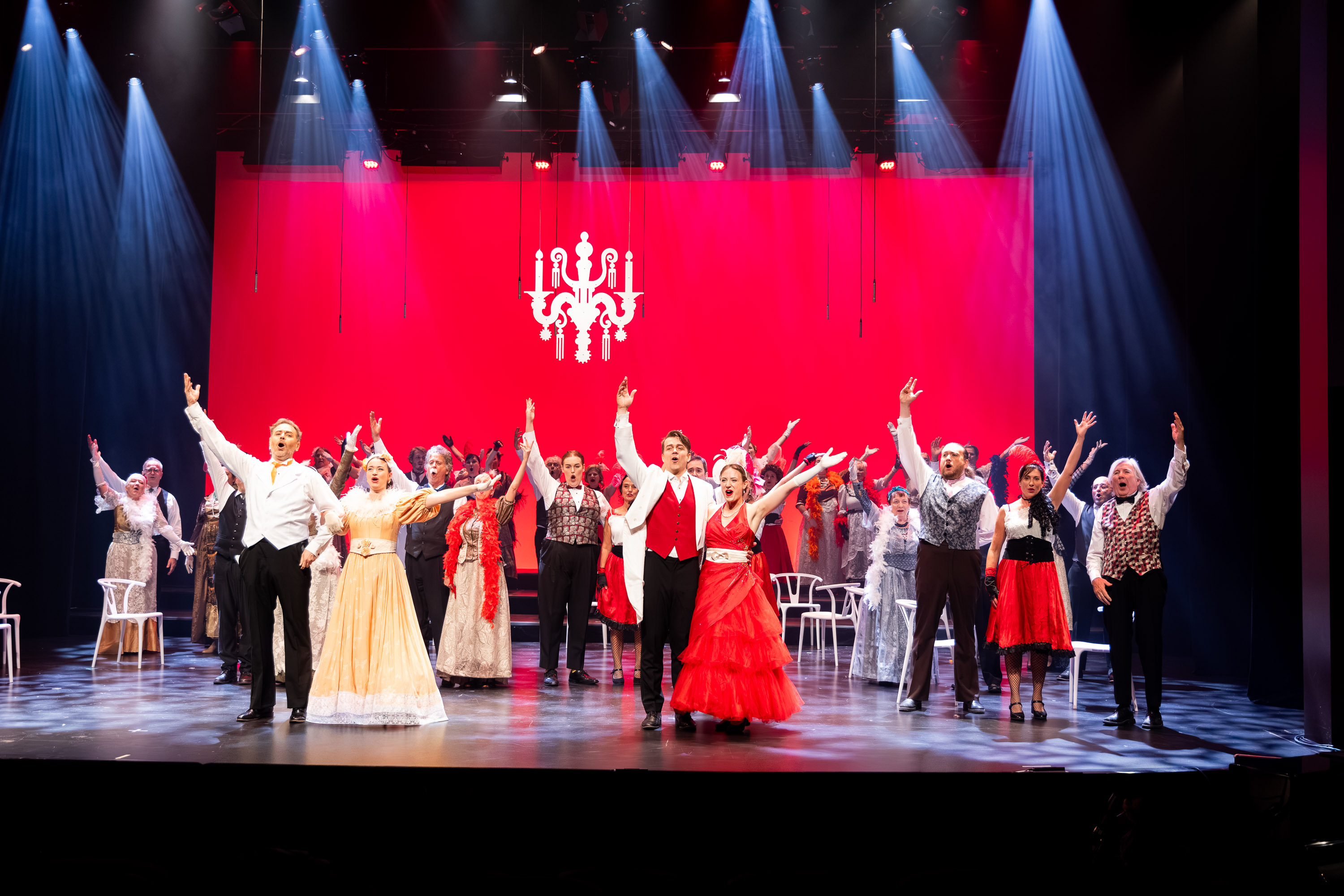 C’était un soir de double première à l’Opéra Bouffe du Québec ! Première représentation de La veuve joyeuse, valeur sûre du répertoire, et première présence dans la fosse du nouveau directeur musical et artistique de l’OBQ, Julien Patenaude… une valeur sûre à sa façon ! En effet, le chef d’orchestre débutant peut se vanter d’une feuille de route fort impressionnante. Né dans une famille de musiciens, il étudie le violon, le chant, fait un bout de carrière en tant que baryton soliste, avant de co-fonder le quatuor vocal Quartom et de compléter une formation en écriture à l’École Nationale de l’Humour. Avec cette carrière sous le signe du rire et de la musique, Julien Patenaude est tout à fait à sa place ici. Sa direction attentive et compétente s’est sûrement assouplie au cours des représentations subséquentes.