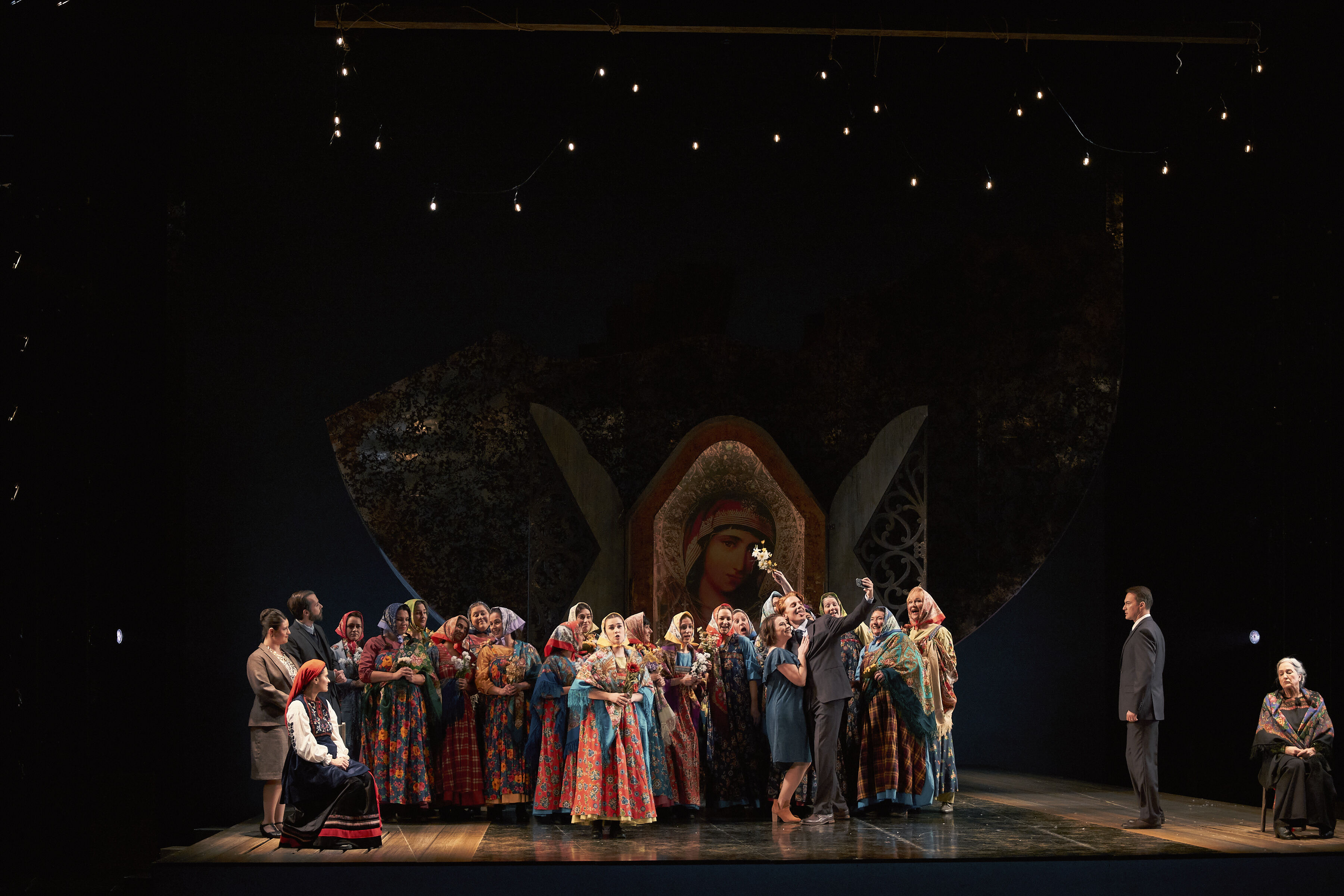 Pour sa production, l’Opéra de Montréal a choisi la mise en scène du cinéaste canadien Atom Egoyan, laquelle avait déjà été présentée en 2017 au Pacific Opera Victoria avec, cette fois-ci cependant, un bien plus grand effectif artistique. Le choix d’impliquer les villageois (le chœur) avec leurs habits traditionnels dans plusieurs des scènes de l’œuvre, et ce, même quand il s’agissait de moments privés, a permis un rappel judicieux et constant de la pression sociale et religieuse ainsi que du déshonneur auxquels faisait face la famille de Jenůfa. Un seul bémol a été observé à travers cette mise en scène : les quelques costumes contemporains ainsi que l’utilisation d’un téléphone intelligent et d’égoportraits pour insinuer la pression de performer et de se montrer sous notre meilleur jour dans notre quotidien actuel. Si l’idée de souligner une continuité de la pression des mœurs d’hier à aujourd’hui a paru intéressante, le manque d’accessoires à cet effet a plutôt mené à une certaine incohérence artistique et temporelle.